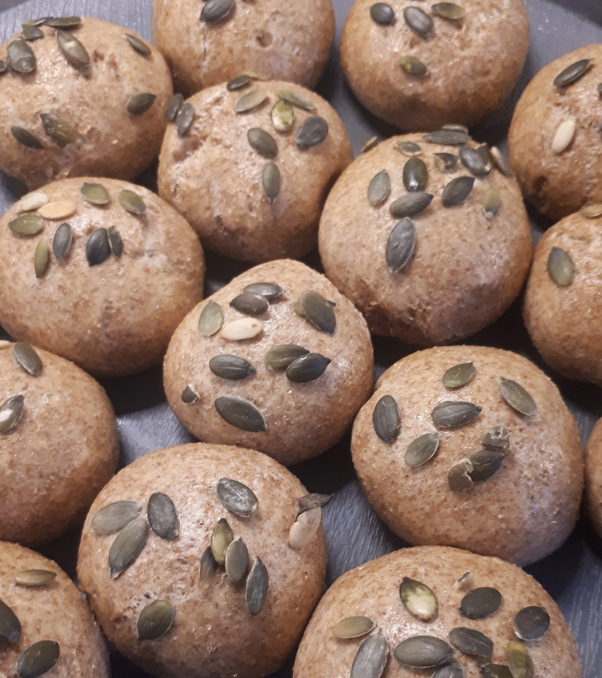 Þessar bollur eru yndislega góðar og ekki skemmir fyrir að þær eru í hollari kantinum. Þegar ég hugsa um brauðbollur hugsa ég til sunnudagsmorgna og að mamma var nýbúin að baka bollur.